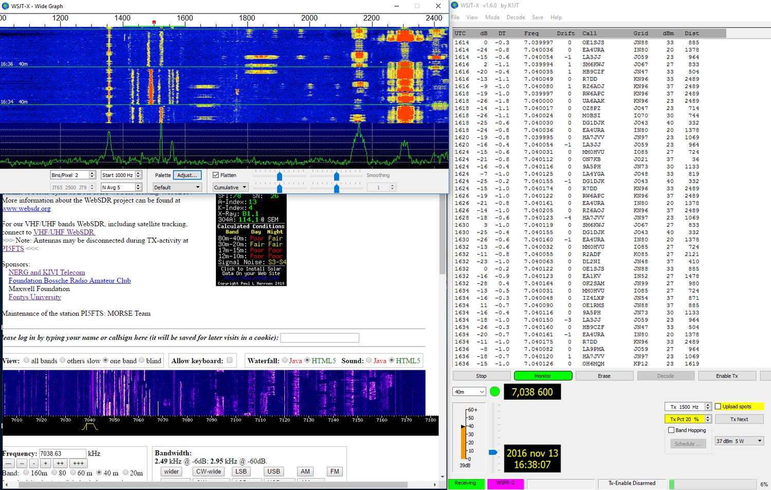 Recording WSPR stations with our WebSDR on 7MHz and WSJTX program.